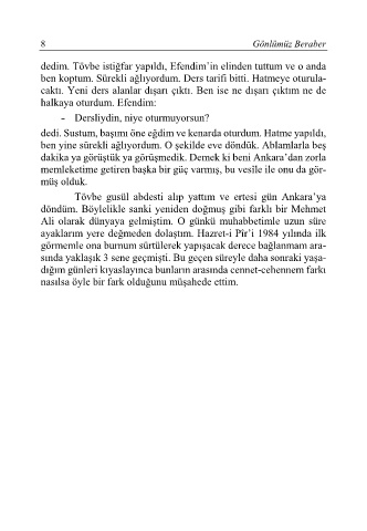 dedim. Tövbe istiğfar yapıldı, Efendim’in elinden tuttum ve o anda