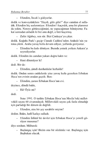 dedik. Ondan sonra caddelerde yine yavaş hızla gezerken Erbakan