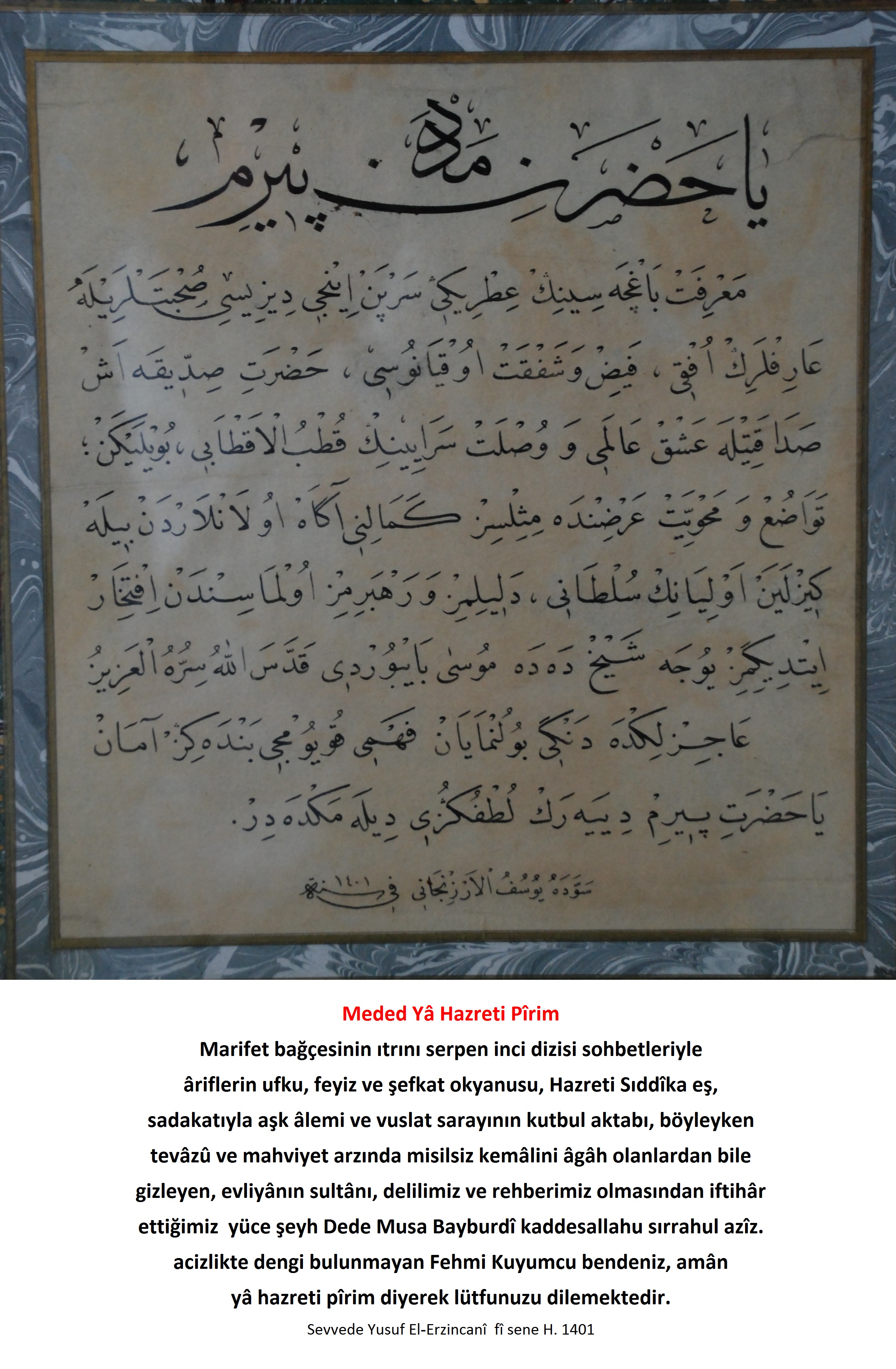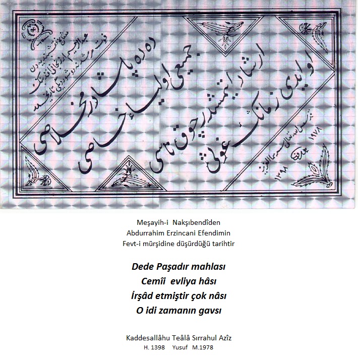 Eş Şeyh Ya Hazreti Seyyid Musa Dede Paşa Bayburdi K.S